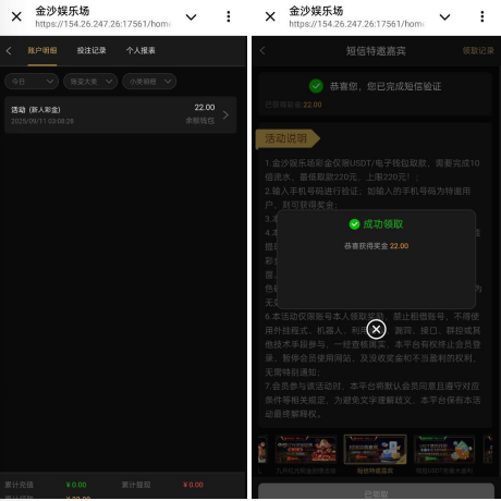 白菜博彩 到账情况:自测【白菜网不担责】 领取方式:金沙娱乐场回馈申请送22彩金 安全系数:低 平台资历:中 会员评分: ★☆☆☆☆ 申领网址:https://722.com 提现要求:咨询平台客服 活动时间:结束时间以官方通知为准 本文章由|白菜网-白菜社区-白菜论坛|分享。 本站资源均来源于互联网,仅供娱乐和参考,仅供娱乐和参考。文中提及的相关行为与本站无关,如有问题本站不承担任何责任,请严格对待!🎩广告合作请联系站长!