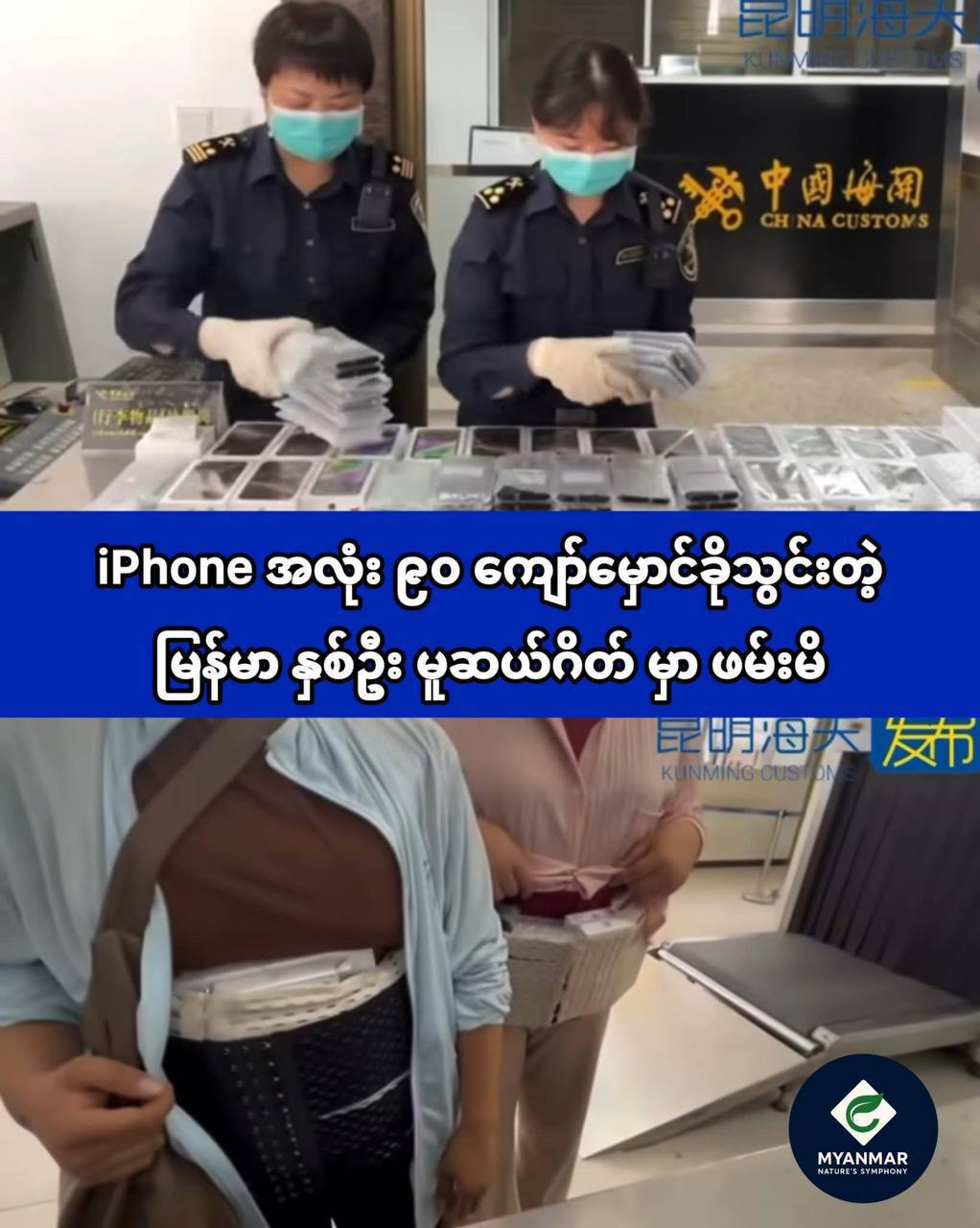 接电话 中缅两名女子腰缠91部iPhone走私在木姐口岸被截获 #缅甸新闻:据悉,一名中国籍和一名缅甸籍女子试图将91部iPhone手机捆绑在腰间走私入境 因当天安检严格在木姐中缅口岸被查获。两人原以为能像往常一样轻松蒙混过关。