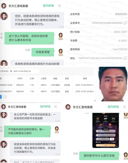 曝光西湖国际 #黑平台 #西港 #东方汇 平台 西岗东方汇 缅甸四大家族刘家的产业 前身果敢福利来, 儿子刘积光,还在东南亚潜逃,藏身在西岗东方汇 充值6000u,打真人,赢了900u封号不给出款,说我用外挂,这是我听过最离谱的理由,我有外挂赢900u,可笑不,这么大平台,这点格局都没有?黑钱也要找个好听点的理由吧,找客服一直都是复制粘贴话术,先说我用外挂,然后又说我刷流水套利洗码,吃相这么难看的平台,大家避雷,充值进去输了啥事没有,赢钱就明吃,钱都拿去帮狗庄买棺材