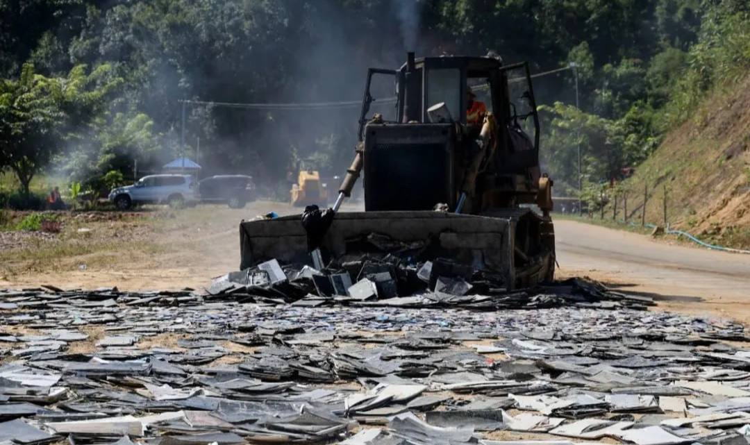 缅北掸邦第四特区(猛拉)铁腕铲除电诈根基,集中销毁近万件涉案电子设备