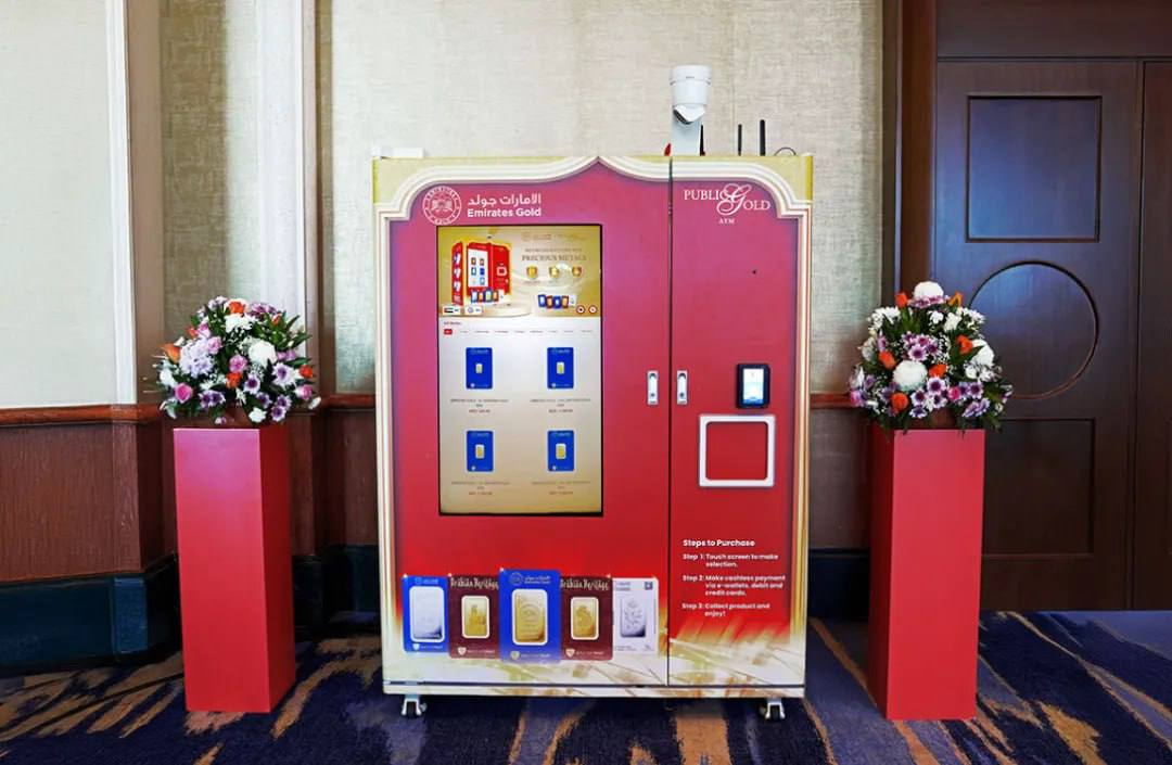 阿联酋黄金公司(Emirates Gold)与马来西亚大众黄金公司(Public Gold)联合推出了一款号称“全球首款金融科技支持的黄金ATM机”,该设备于2025年迪拜贵金属会议期间在棕榈岛亚特兰蒂斯酒店正式亮相。